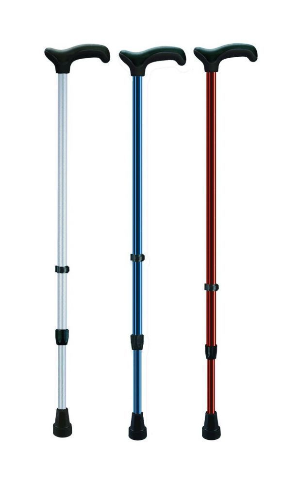 A járásbiztonság növelésére és az alsó végtagok tehermentesítésére szolgáló segédeszköz. Anyaga alumíniumcső. Ezüst, kék és piros színekben kapható.
